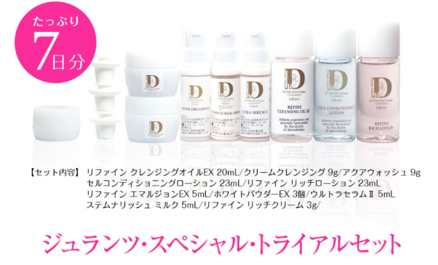 ジュランツのほぼ全ての商品を約1週間試すことができる、とてもお得なセットです。
